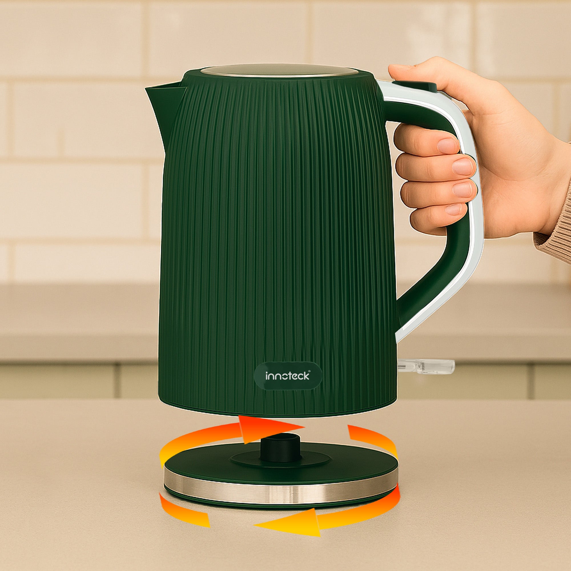 Yes. The cordless 1.7L electric kettle features a 360-degree rotating base. It allows for easy lifting and pouring from any angle.