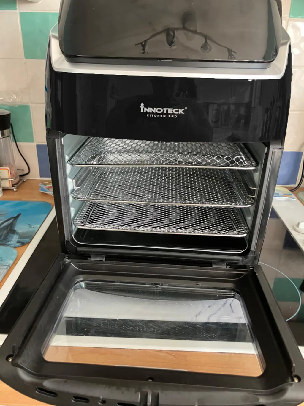 Innoteck air fryer with cooking options displayed on a white background