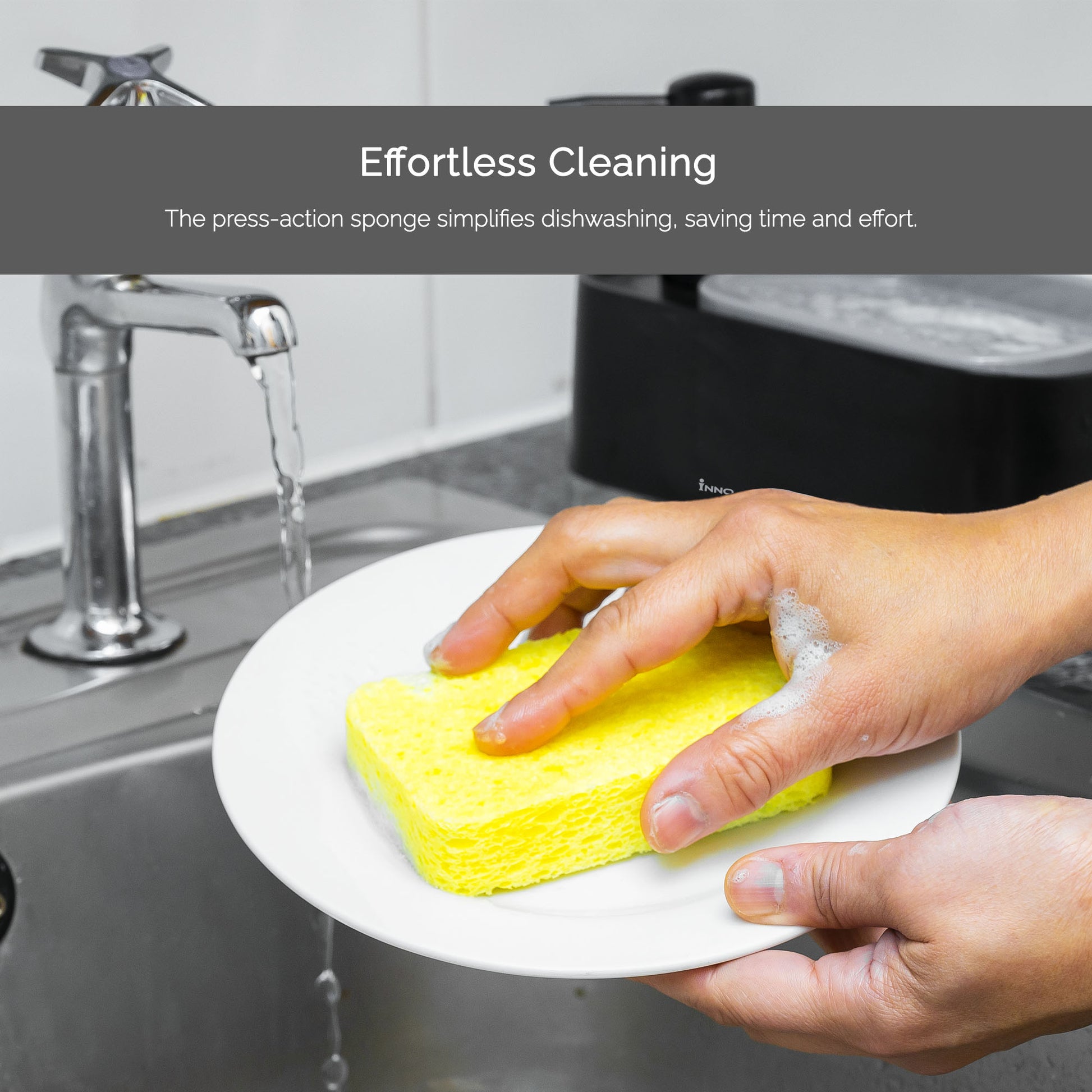 Simplify dishwashing with the Innoteck Soap Dispenser with Sponge Holder. This 3-in-1 dispenser combines convenience and functionality, making it the perfect choice for your kitchen accessories. This keeps your counter organised while dispensing just the right amount of soap for efficient cleaning.