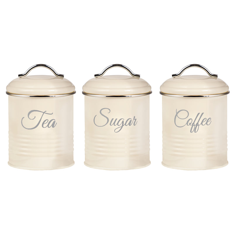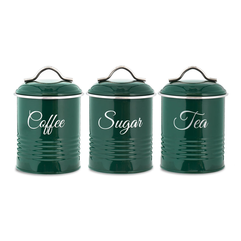 Yes, each canister is clearly labelled-Tea, Coffee, and Sugar-for easy identification.