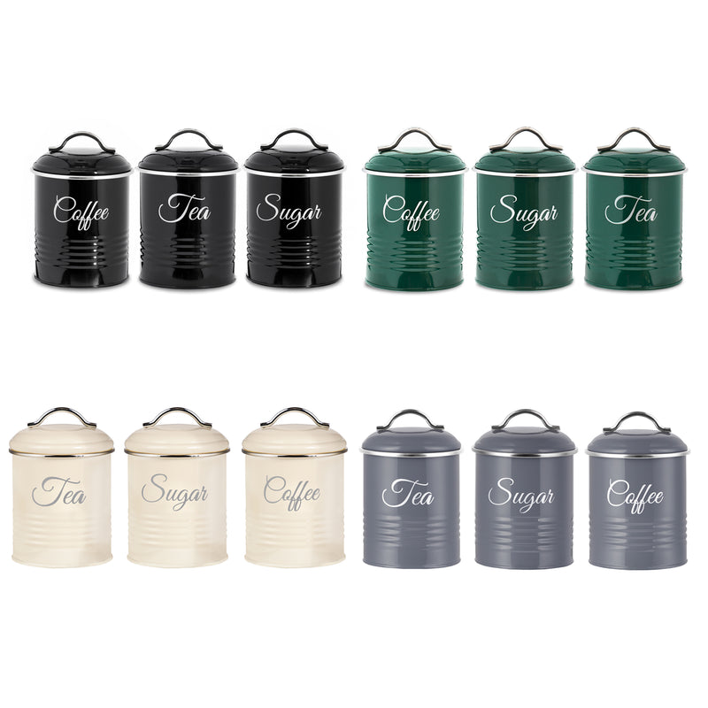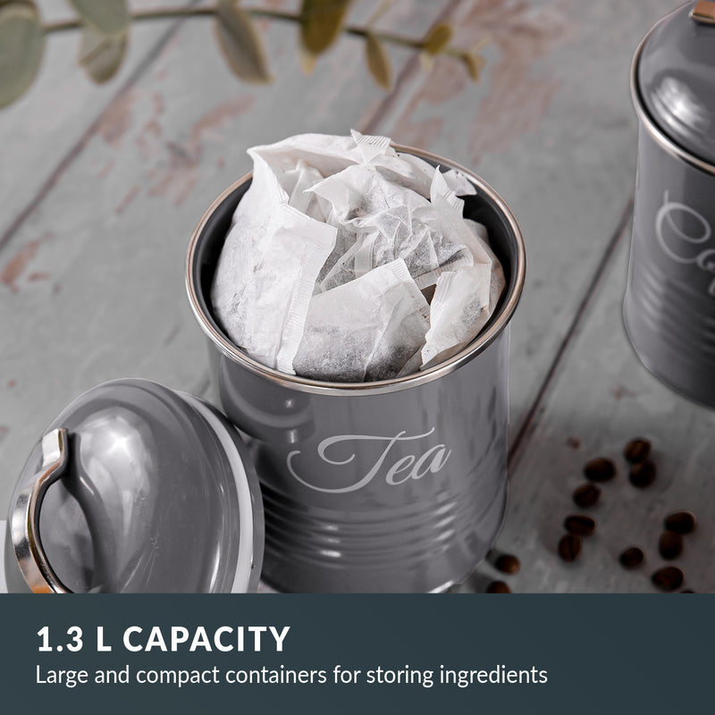 Each canister has a 1.3L capacity, ideal for storing tea, coffee, sugar, or other dry ingredients.