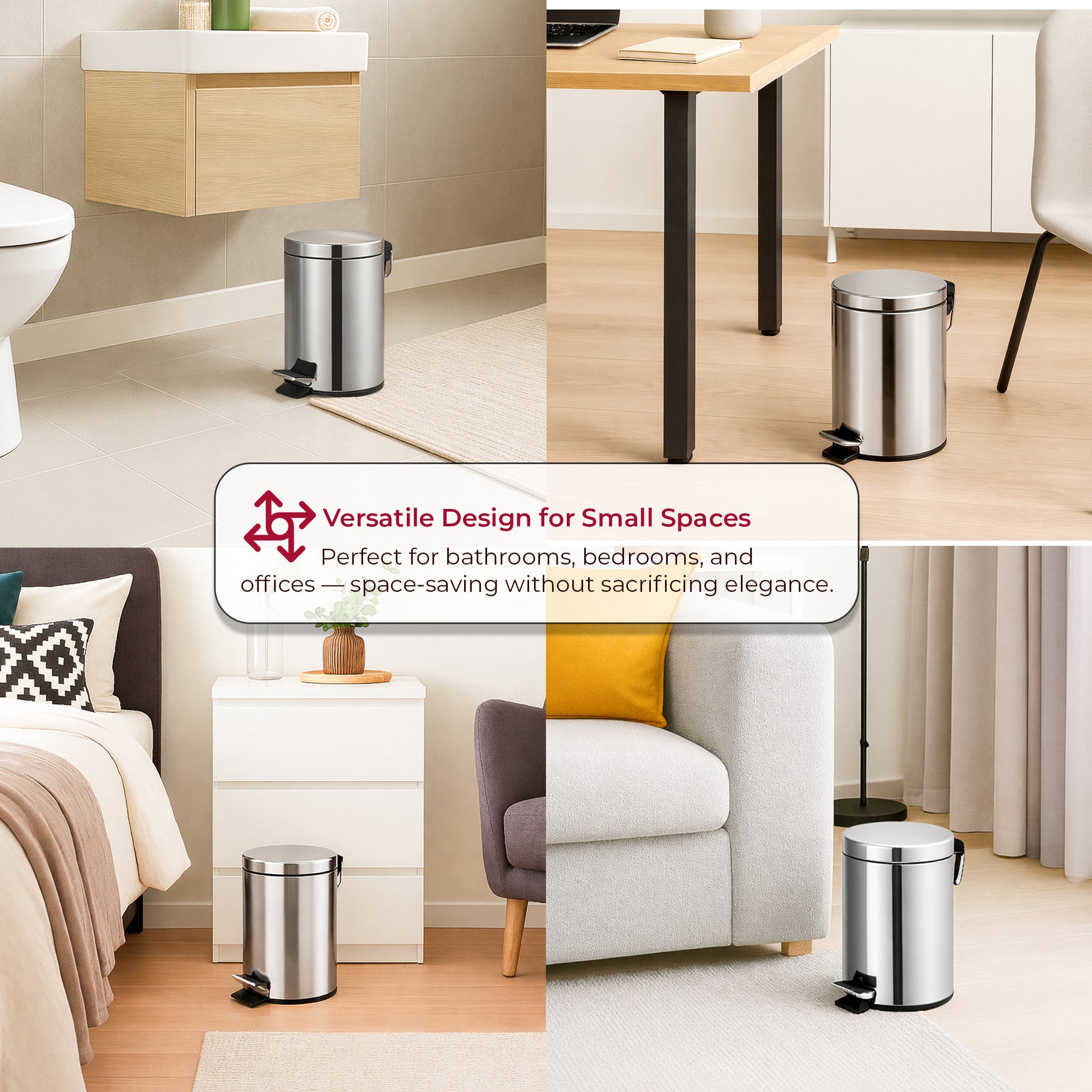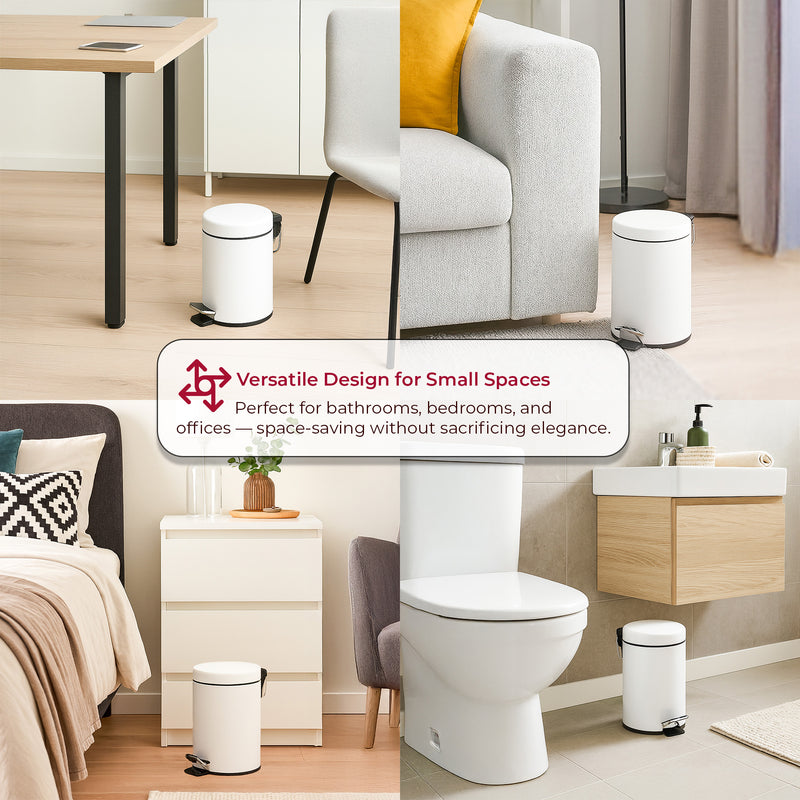 Yes, this 3L pedal bin metal with inner bucket is perfect for both bathrooms and kitchens, thanks to its compact size and sleek design.