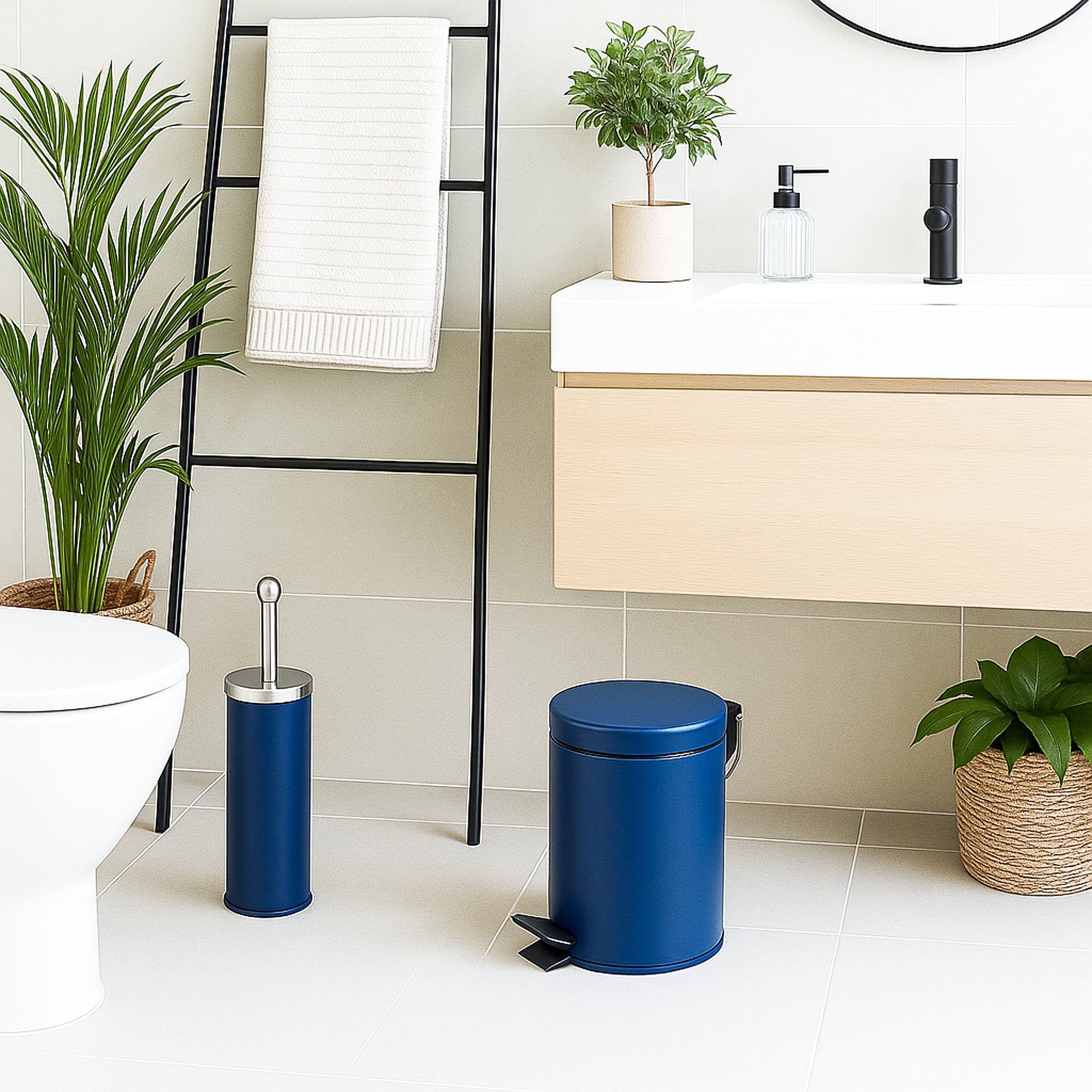 Begin by carefully removing all packaging from both the pedal bin and toilet brush set. Check that the pedal mechanism operates smoothly by pressing it a few times. Before the first use, take a clean, damp cloth and wipe both the exterior and interior of the bin to remove any dust or residue left from packaging. Make sure to dry the bin thoroughly before placing a small trash bag inside to keep everything hygienic. For the toilet brush holder, wipe it down as well, ensuring it is clean and dry before placing the brush inside.