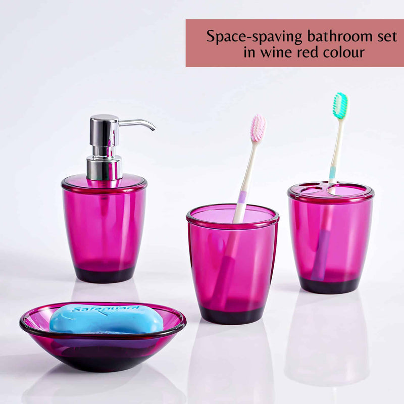 Efficient, stylish and sturdy, this 4-piece bathroom accessory set by Innoteck is the perfect addition to your bathroom. Available in wine red and smokey grey.