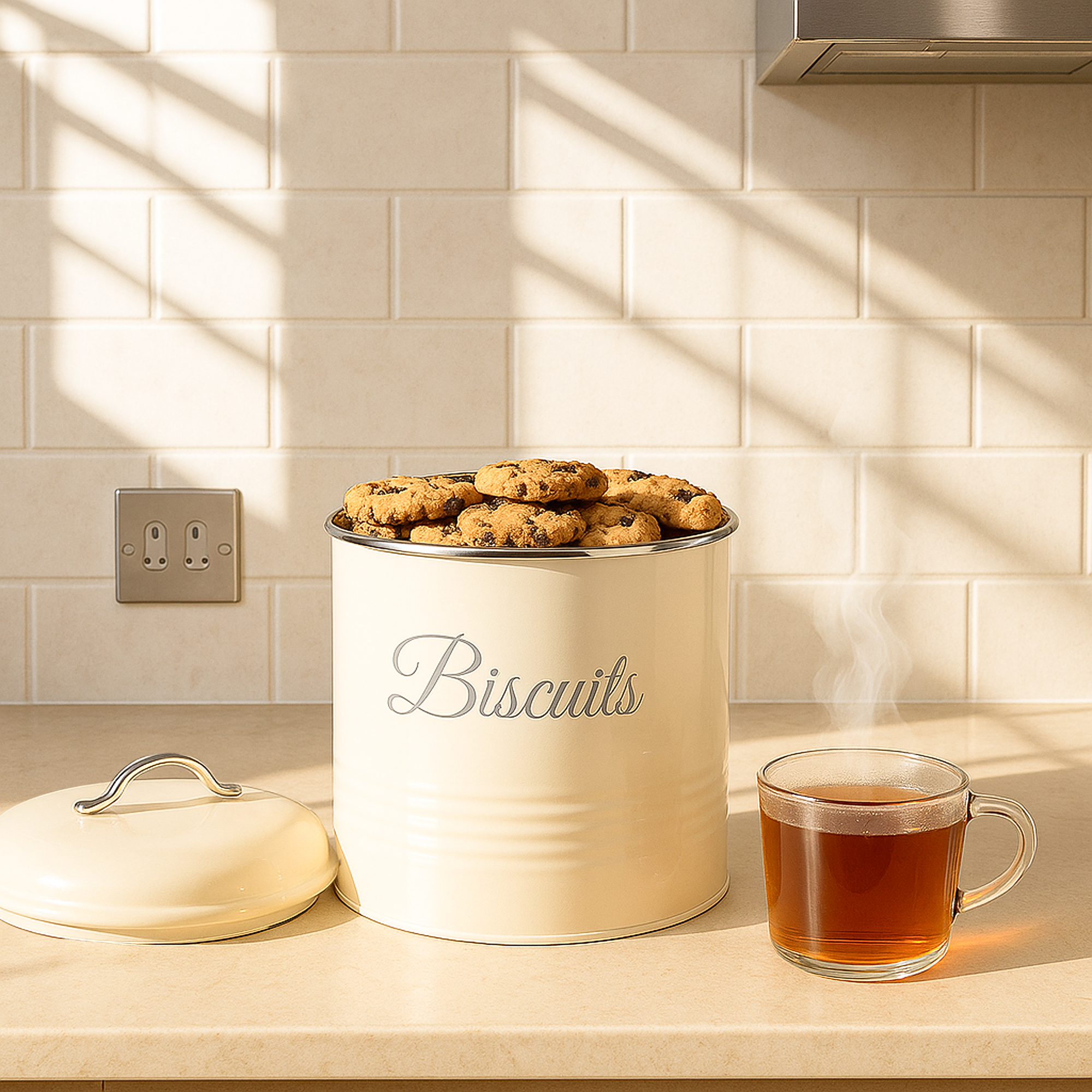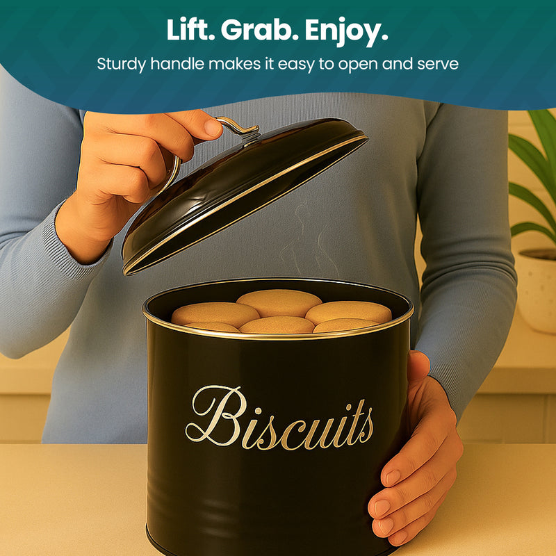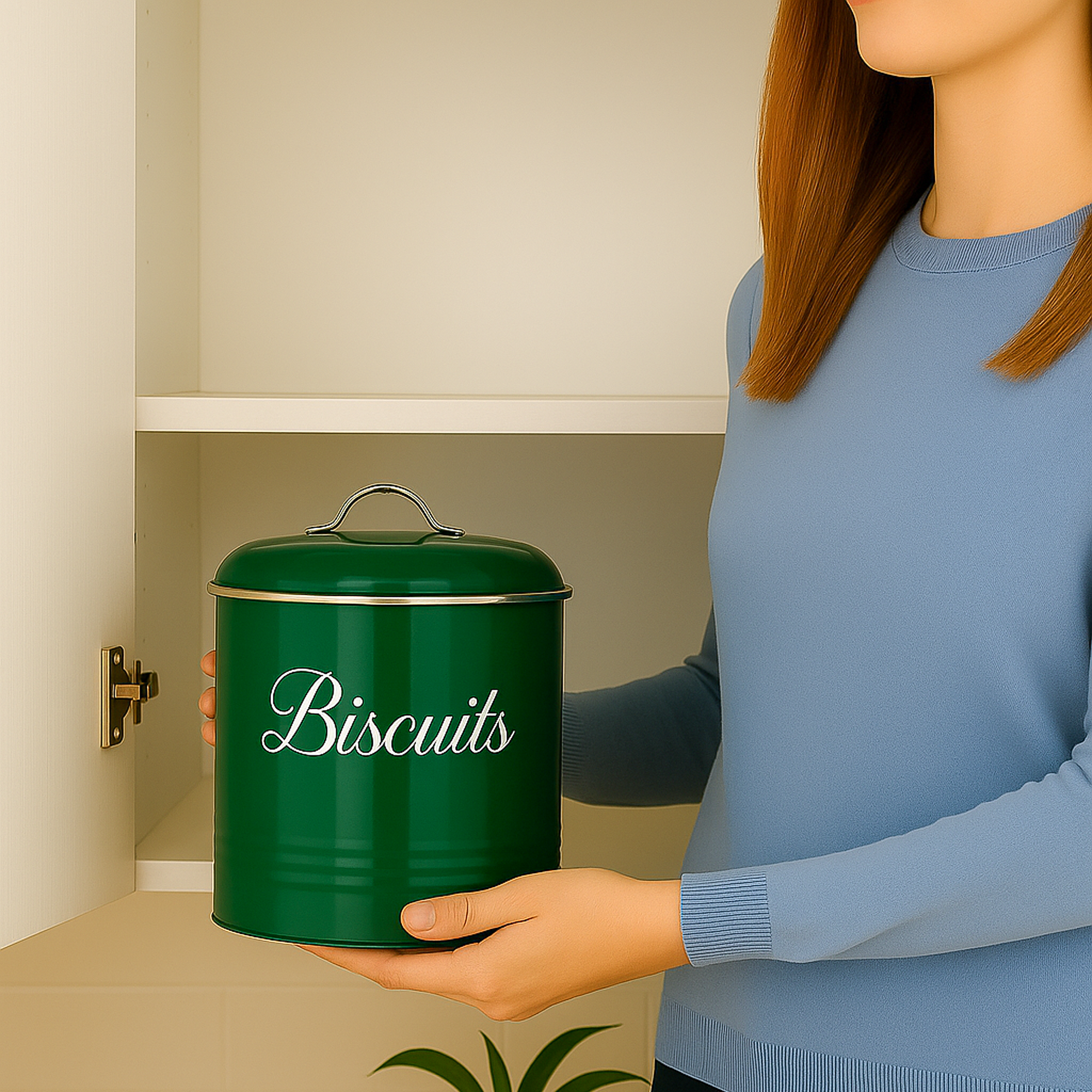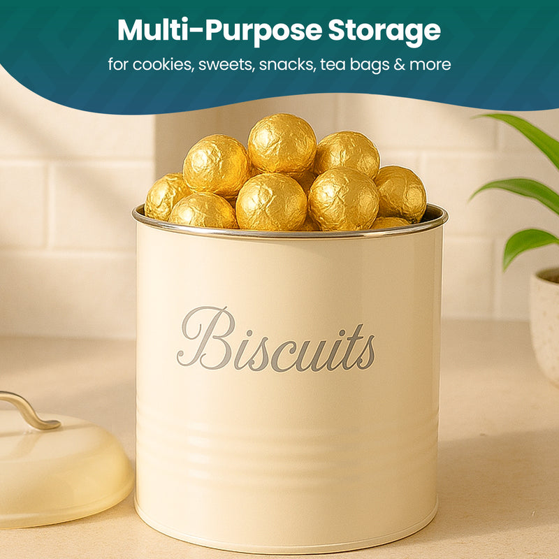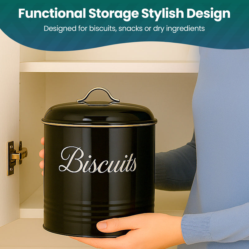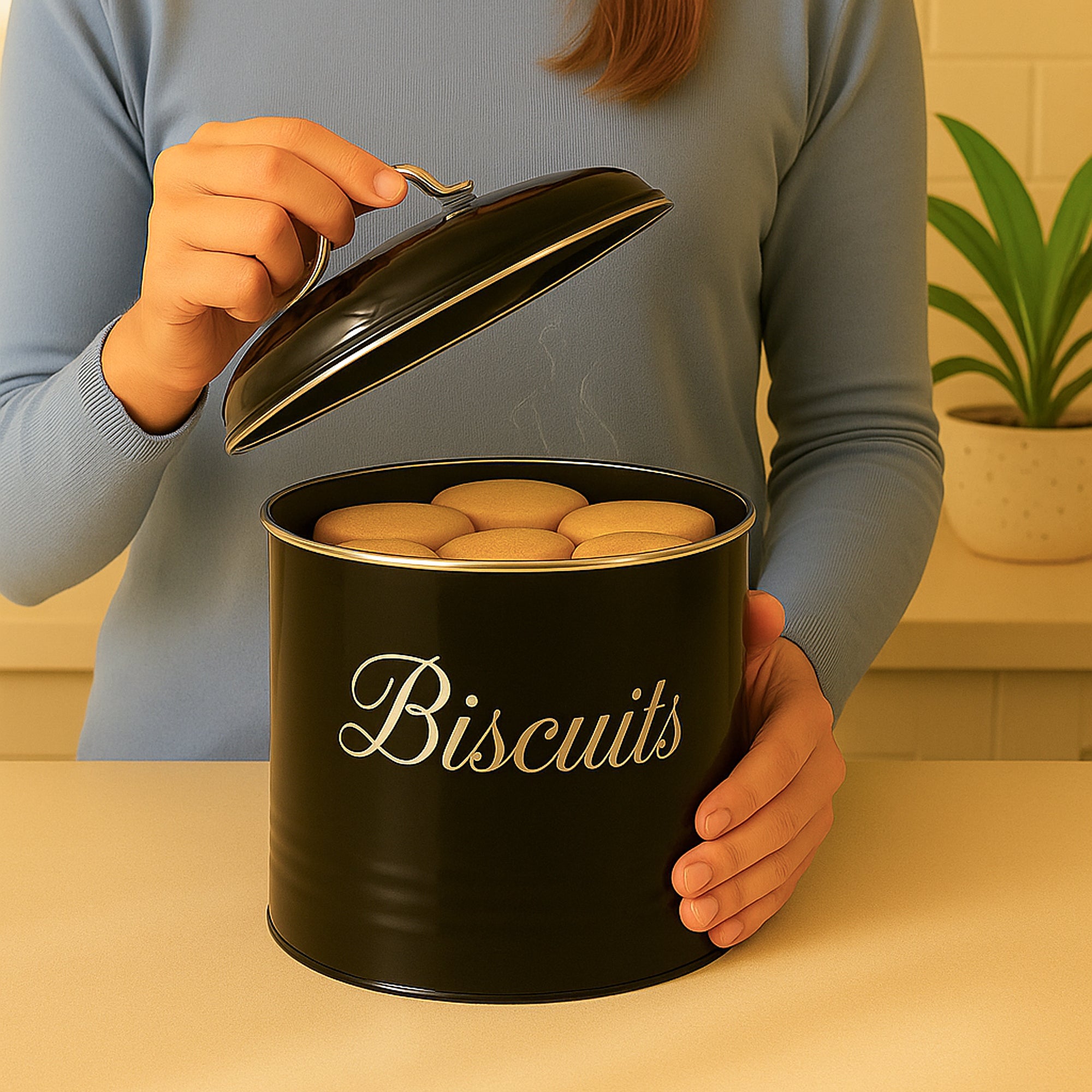 It has a large 5.3L capacity, perfect for storing biscuits, cookies, snacks, and other kitchen essentials.
