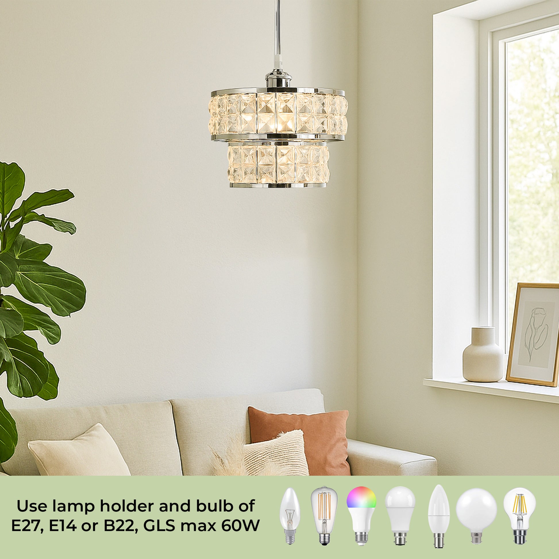This decorative pendant lampshade is compatible with most standard bulbs, allowing flexibility in brightness and colour tone.
