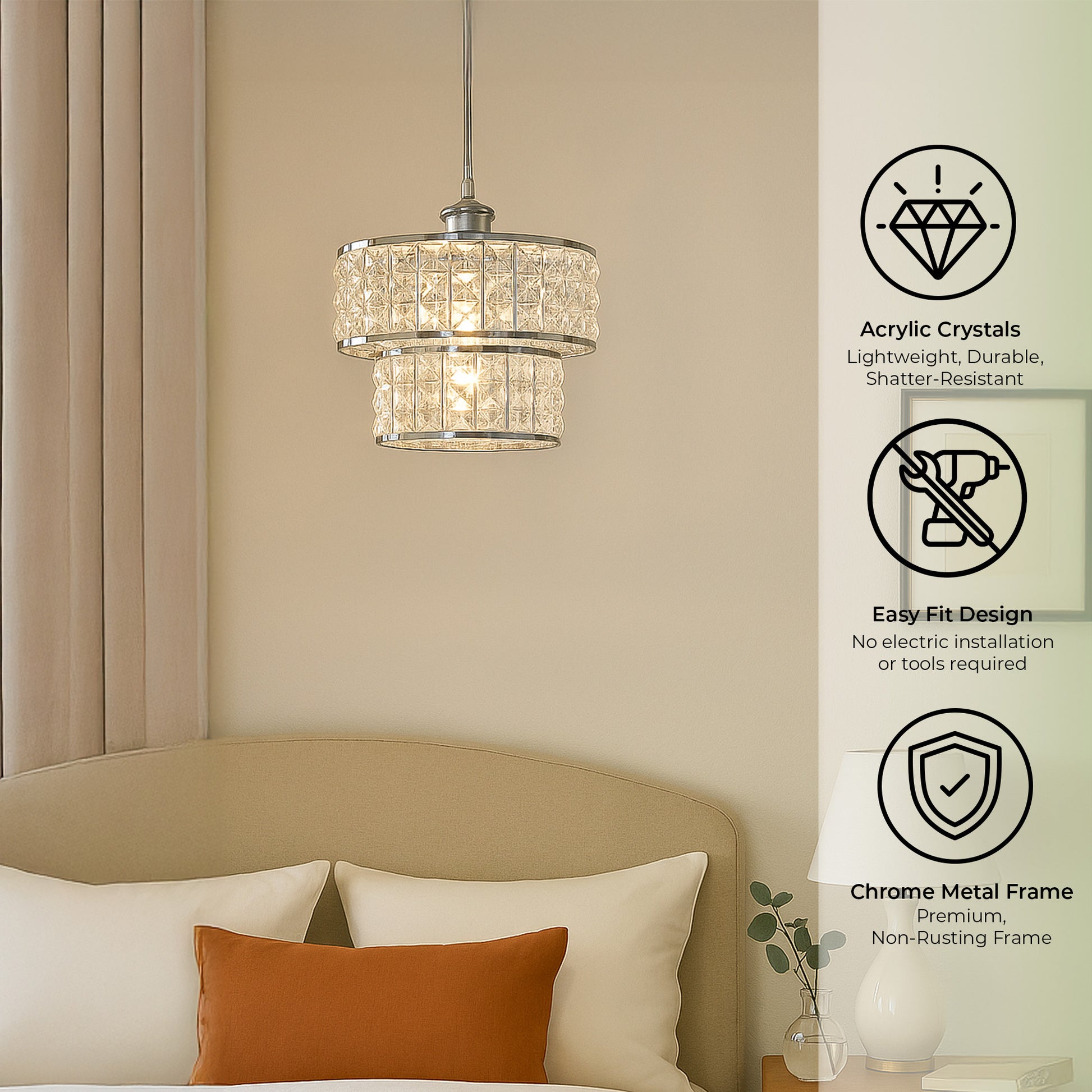 Yes. The lightweight acrylic lampshade design makes it easy to handle while still looking premium and elegant once installed.