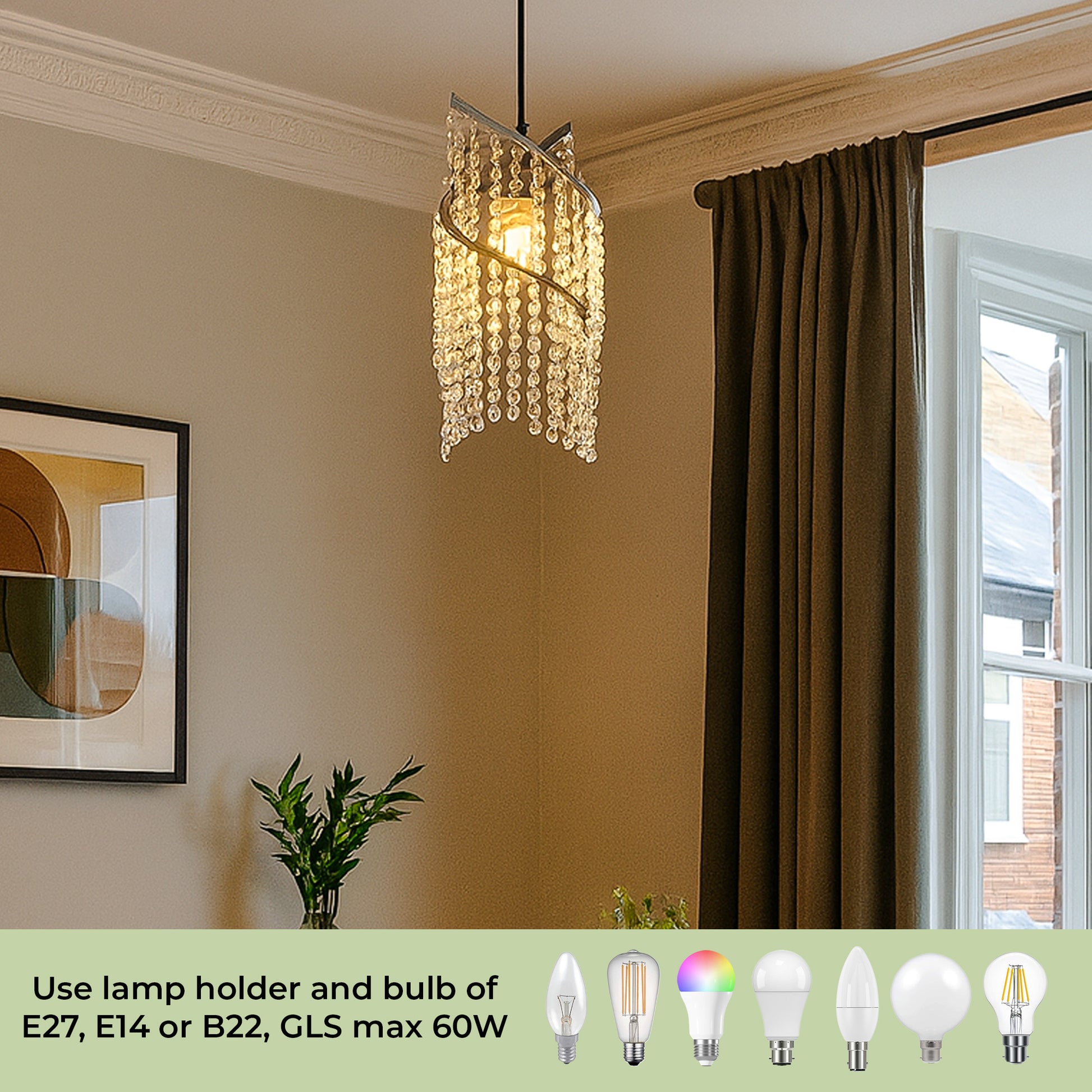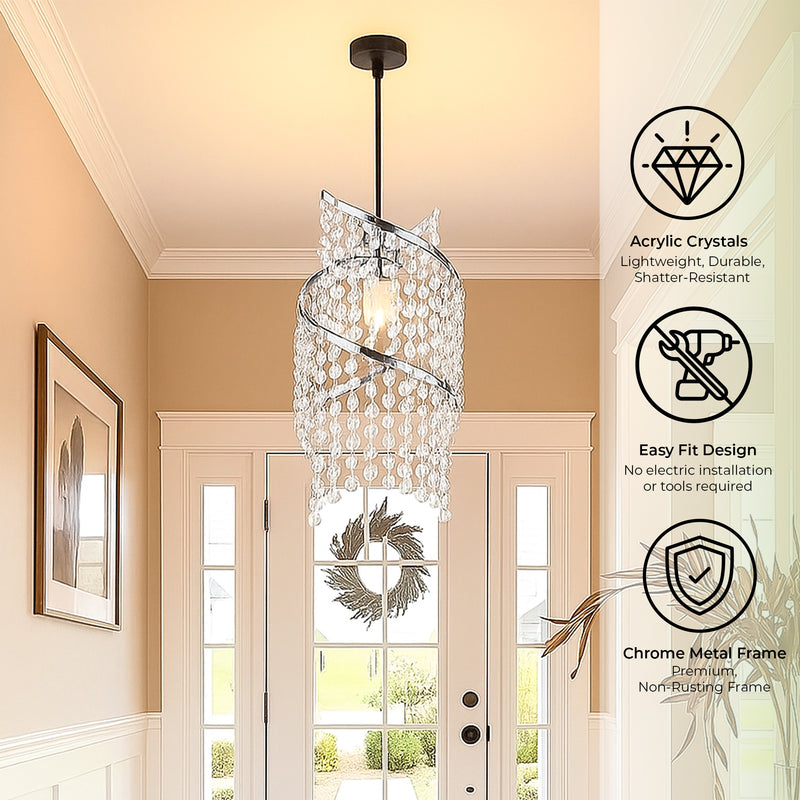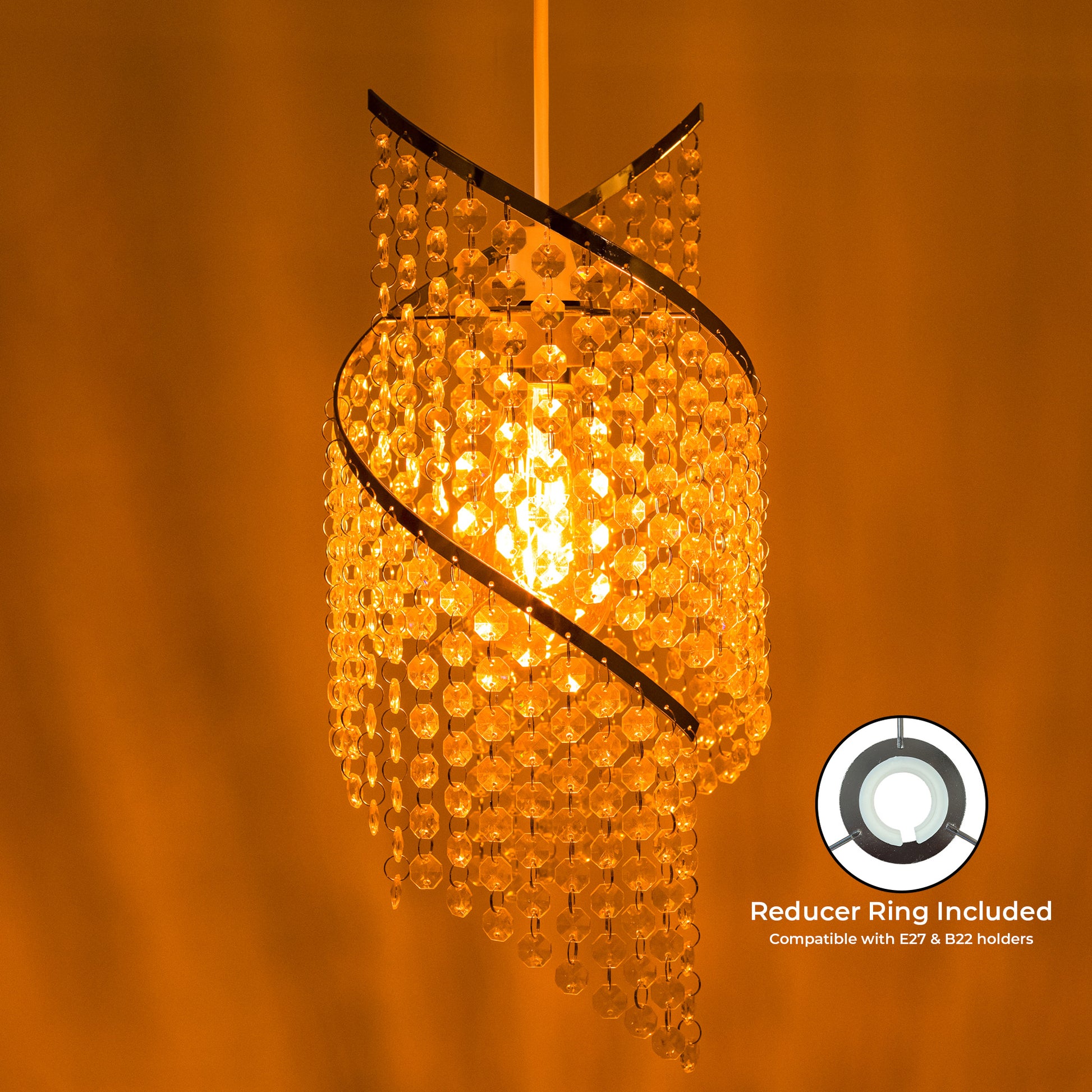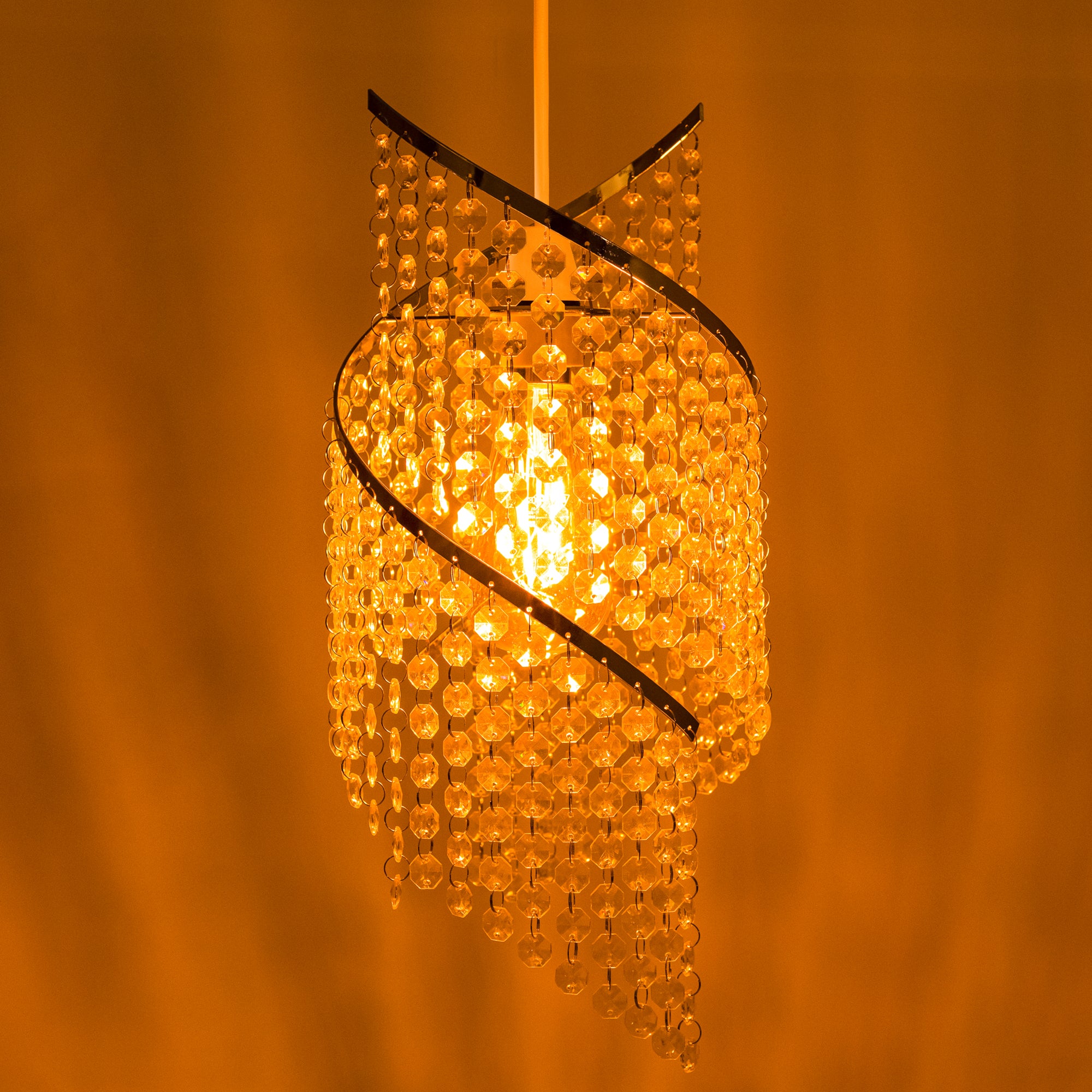 It uses high-quality acrylic crystal droplets that create a crystal effect pendant light shade finish (crystal glass look).