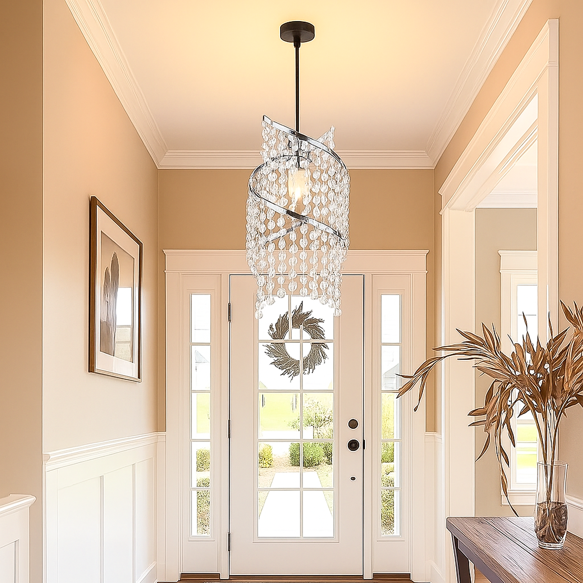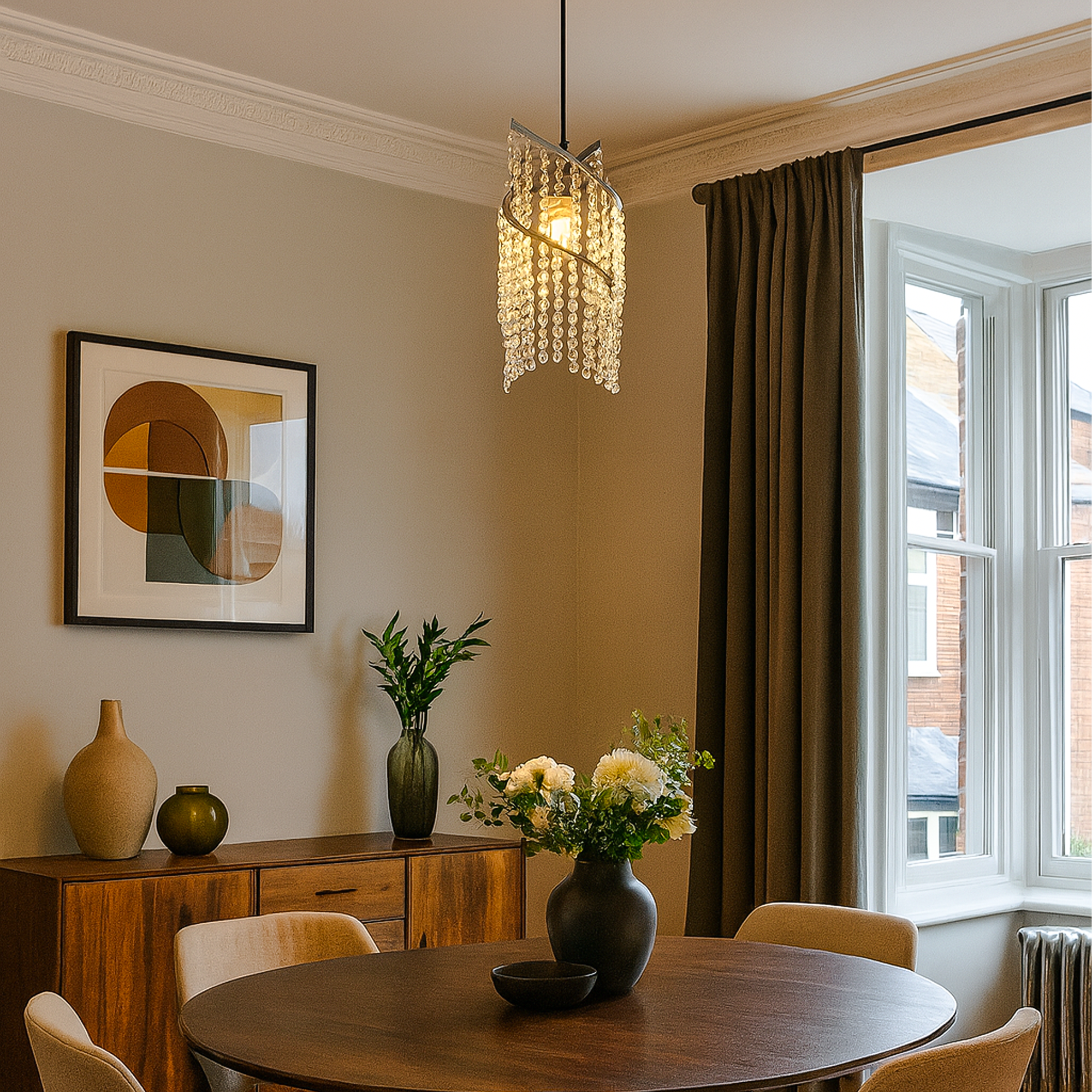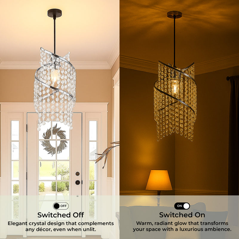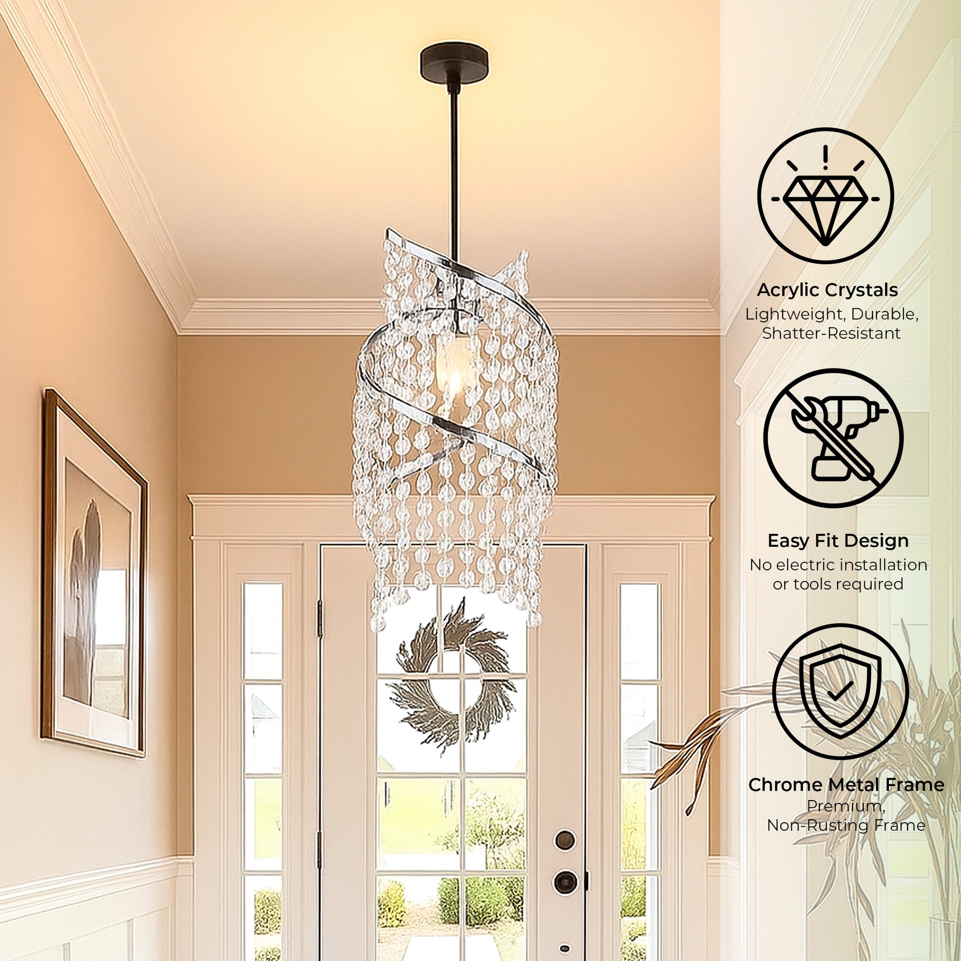 It uses high-quality acrylic crystal droplets that create a crystal effect pendant light shade finish (crystal glass look).