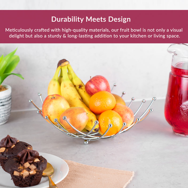 Crafted from high-quality chrome, the bowl is not only visually appealing but also strong and stable, supporting even heavier fruits like pineapples and melons.