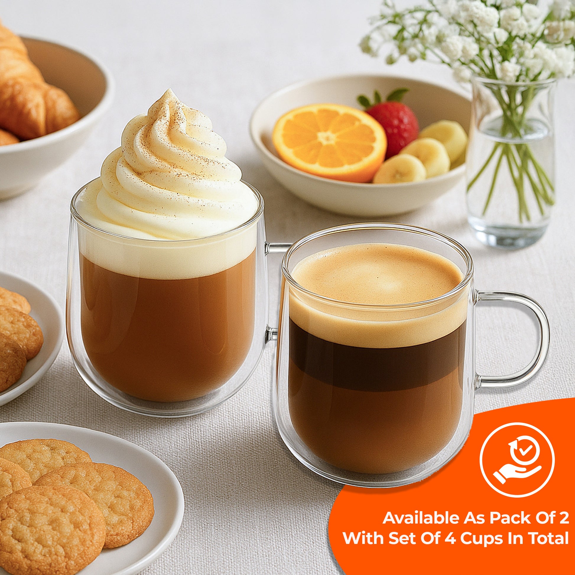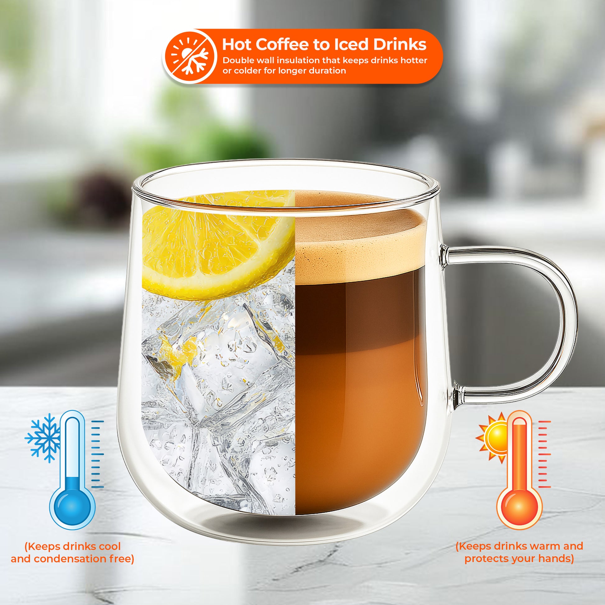 These glass mugs are ideal for Americano, latte, cappuccino, tea, coffee, hot chocolate, and even cold drinks.