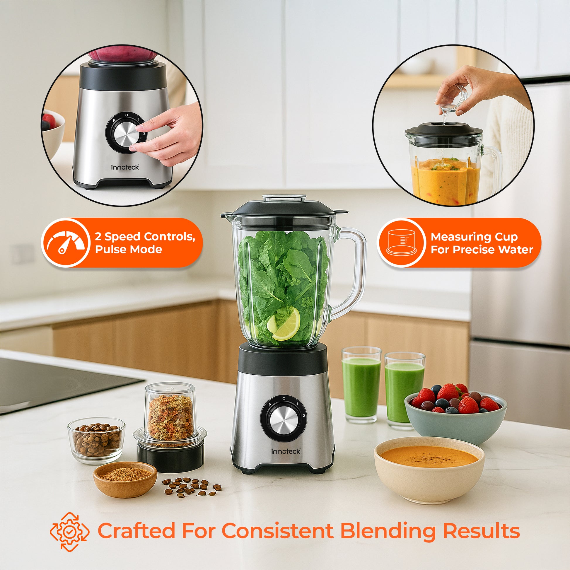 Yes, it does. The Innoteck 1.5L smoothie blender includes two speed settings plus a Pulse mode, giving you full control for smoothies, batters, sauces, and more.