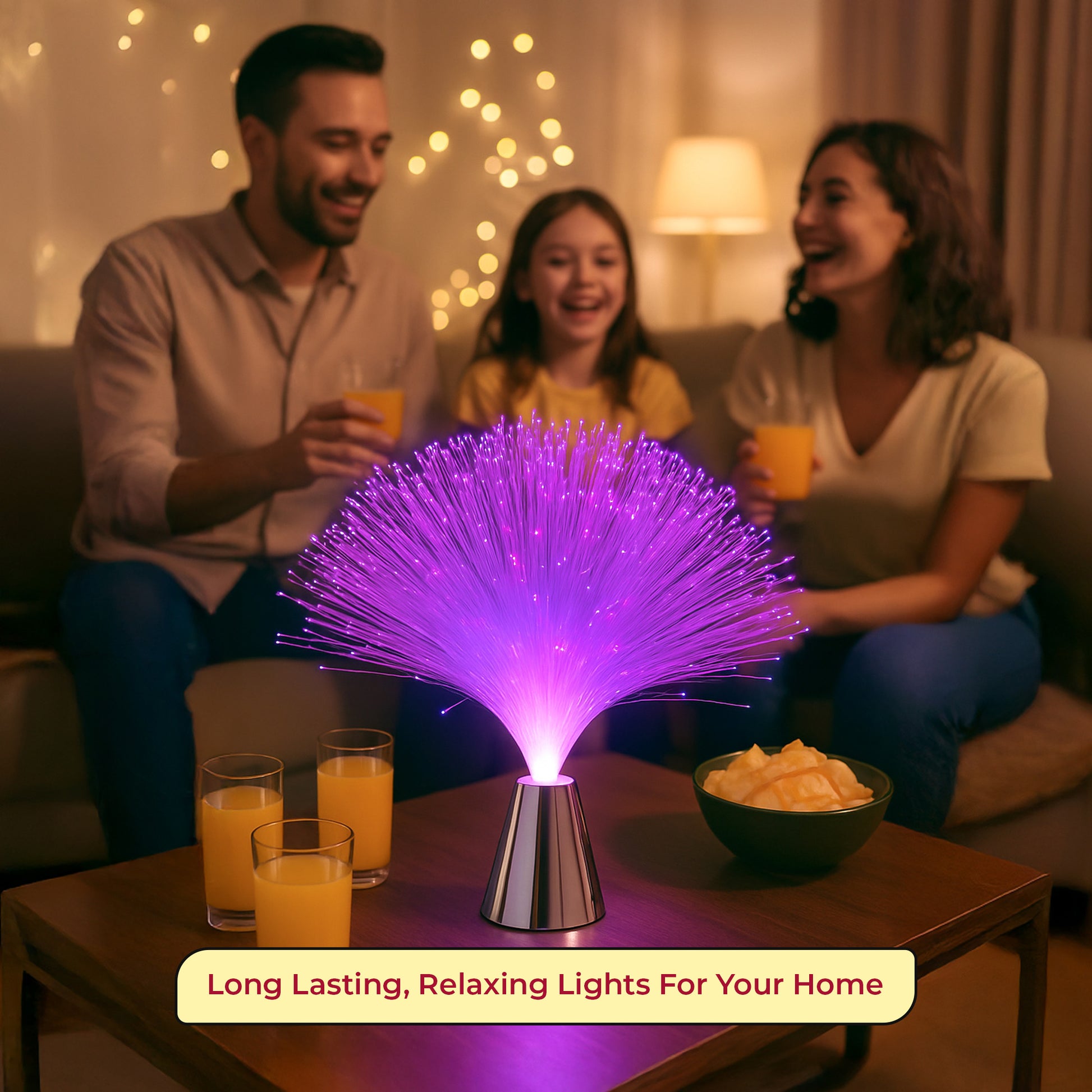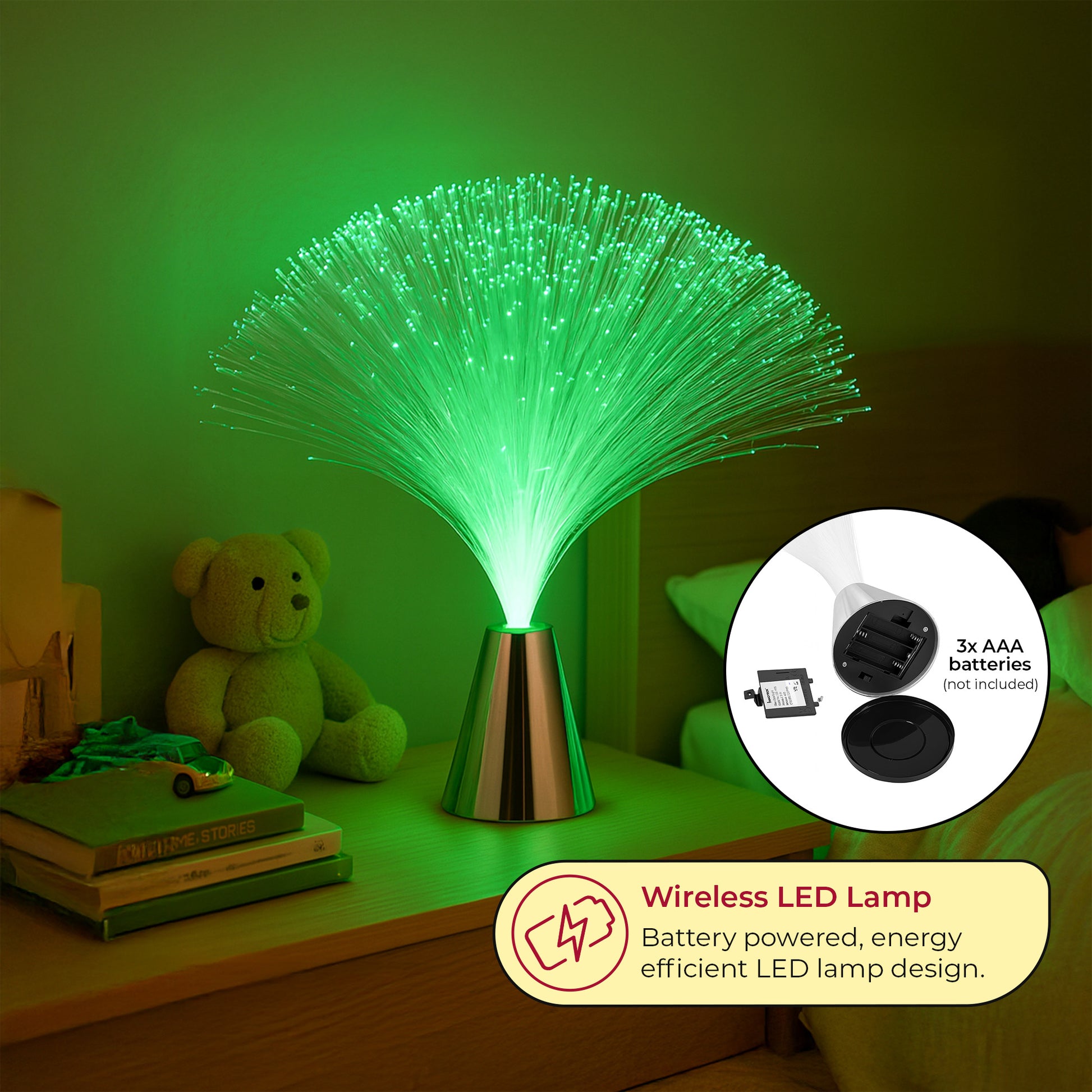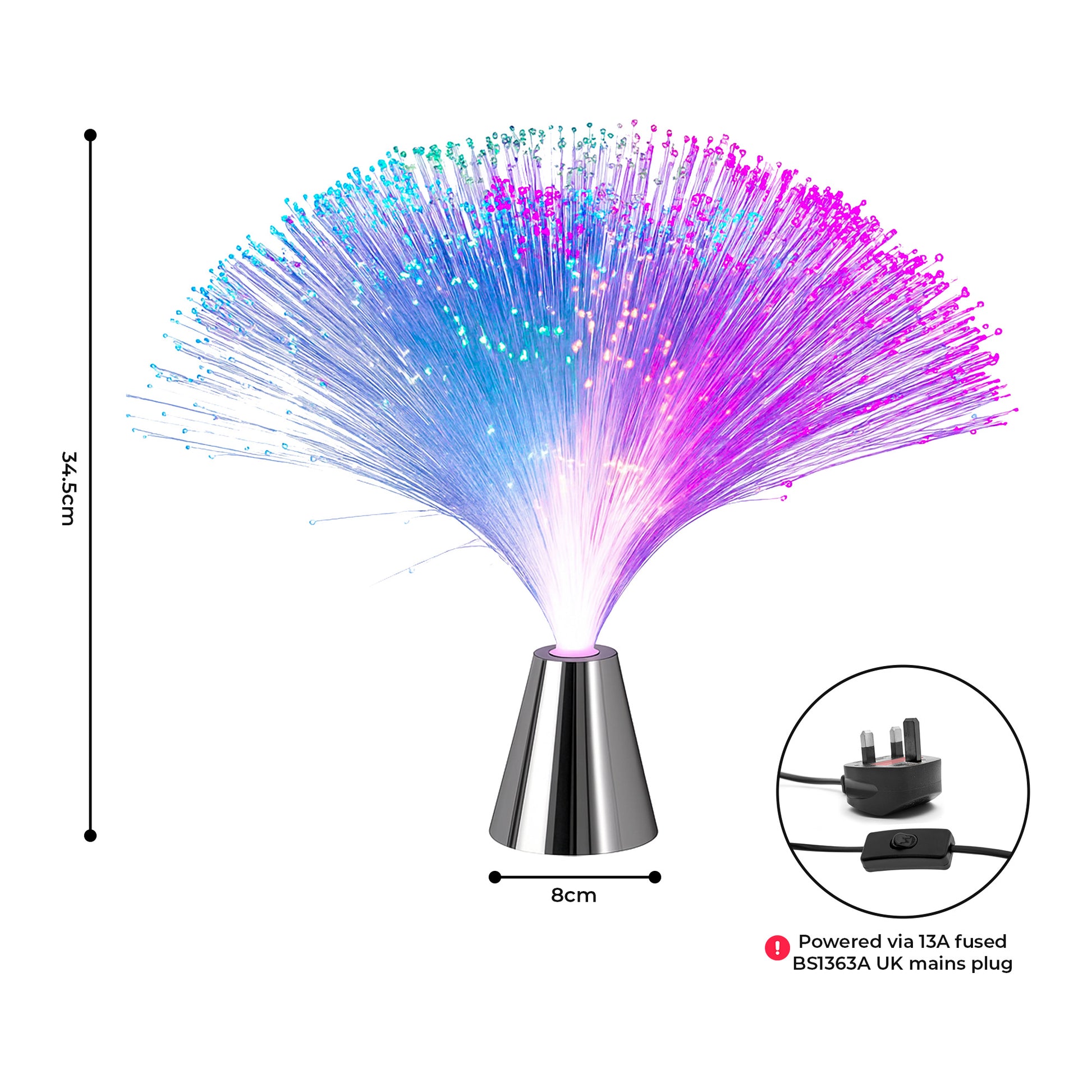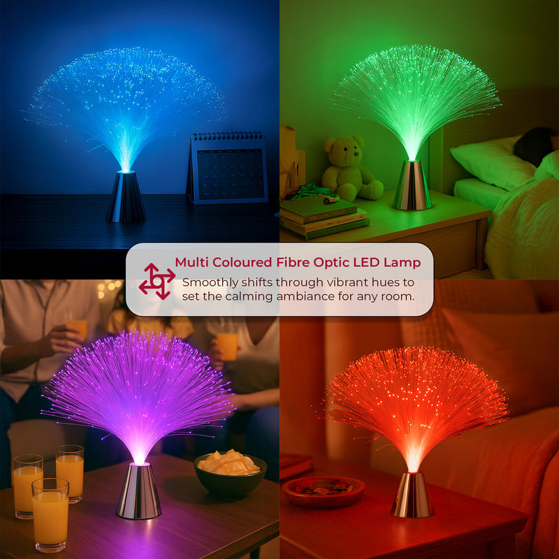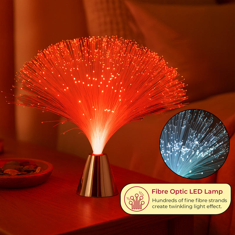 The fibre optic LED lamp uses hundreds of fine fibre strands to diffuse light, creating a soft, twinkling glow that adds a calming and magical ambience to any room.