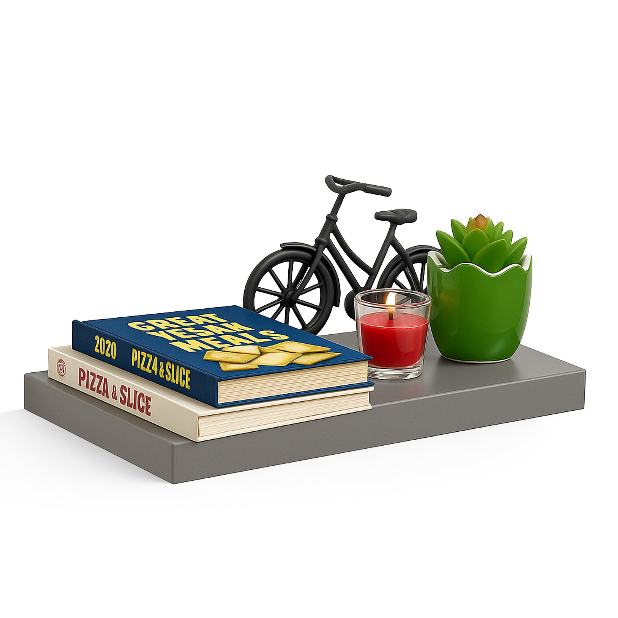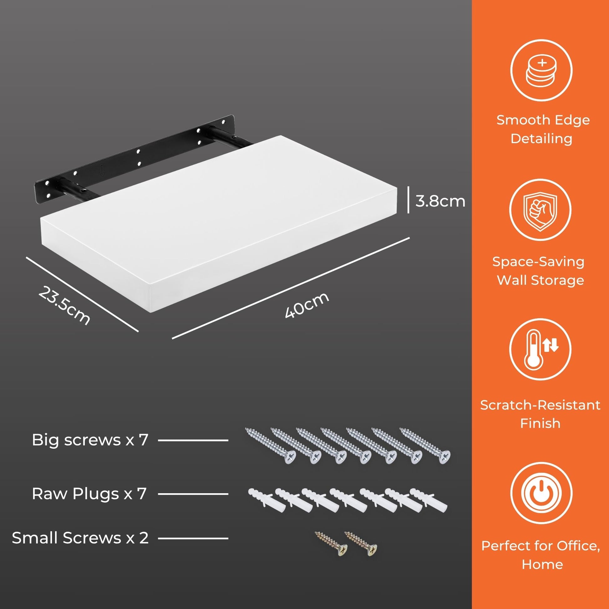 Add style and functionality to your home with these floating wall-mounted shelves, a true essential for kitchen, office, or living room décor. Designed to organise home essentials effortlessly, these shelves are crafted with premium materials, offering excellent durability and sturdiness for holding books, pots, flowers, and more. Available in black, white, and grey in 40 cm they fit seamlessly into any interior. Easy to assemble, these versatile accessories for kitchen or living spaces elevate your décor with a glossy finish, making them perfect essentials for new home arrangements.