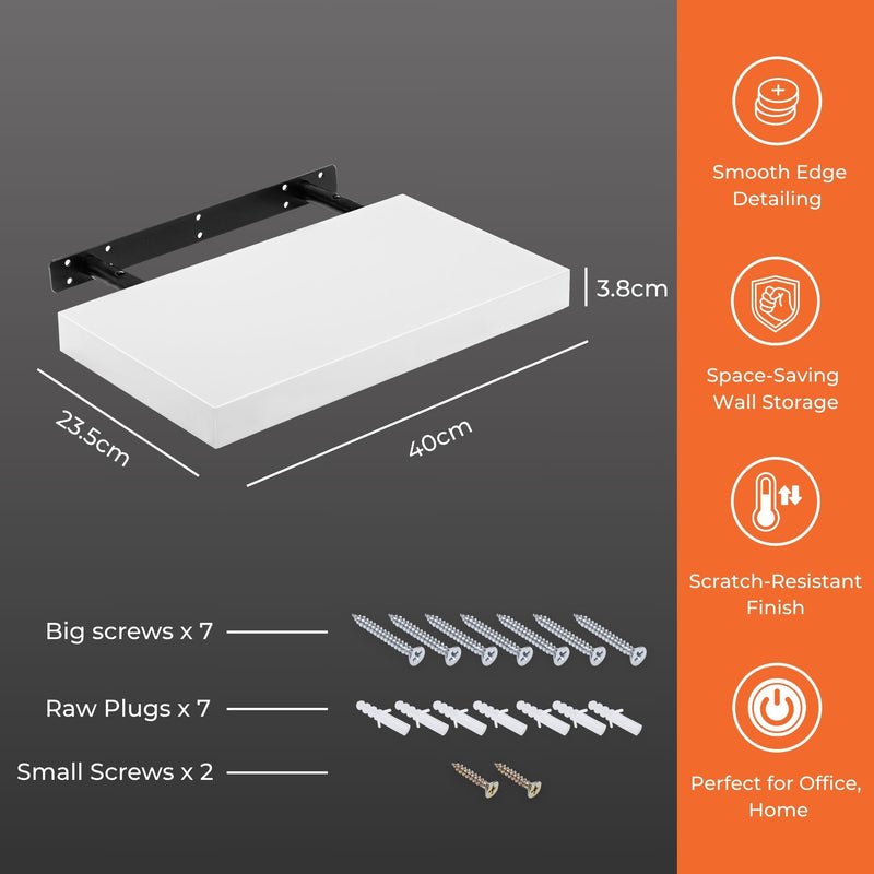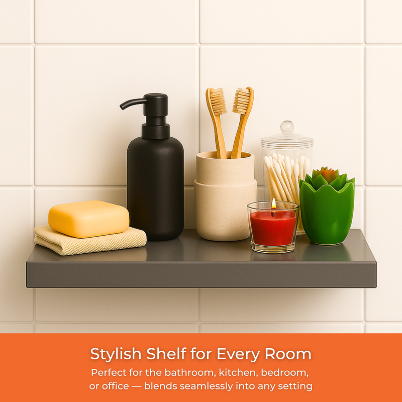 Enhance your space with our 40 cm wall-mounted floating shelves in black, white, and grey. Ideal for kitchens, bathrooms, living rooms, or offices, these shelves add style and functionality to any home.