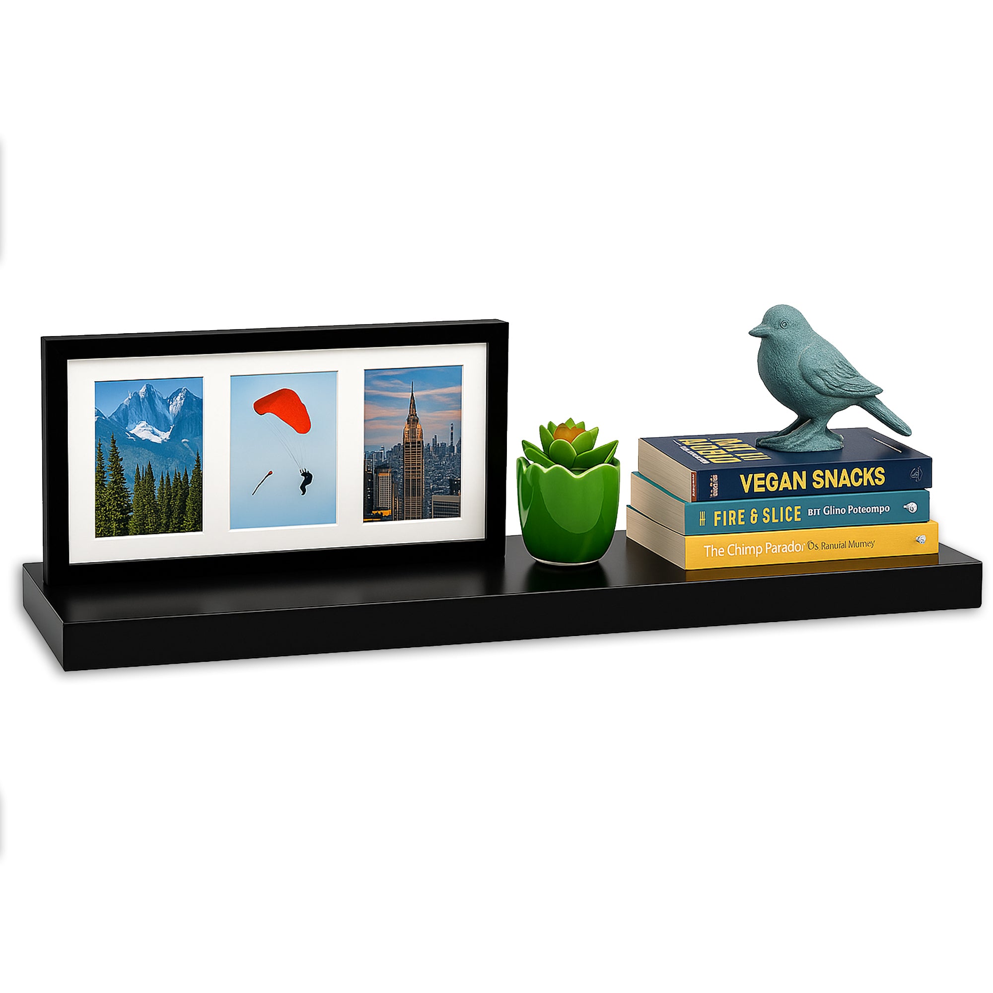 Arrange lightweight items such as books, plants, or décor pieces on the shelves. For upkeep, wipe the shelves with a damp cloth to maintain their glossy finish. Avoid overloading to ensure longevity and stability.