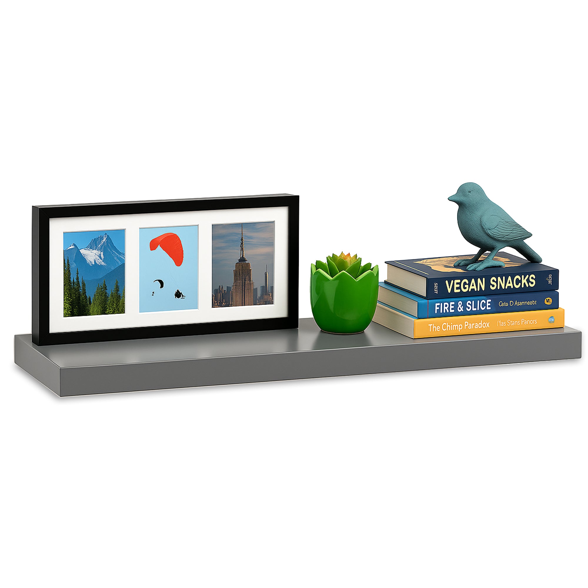 Follow the included instructions to assemble the shelves if required. Securely attach the mounting brackets to the wall using the provided screws and tools, then slide the shelves into place. Double-check that they are stable and level.