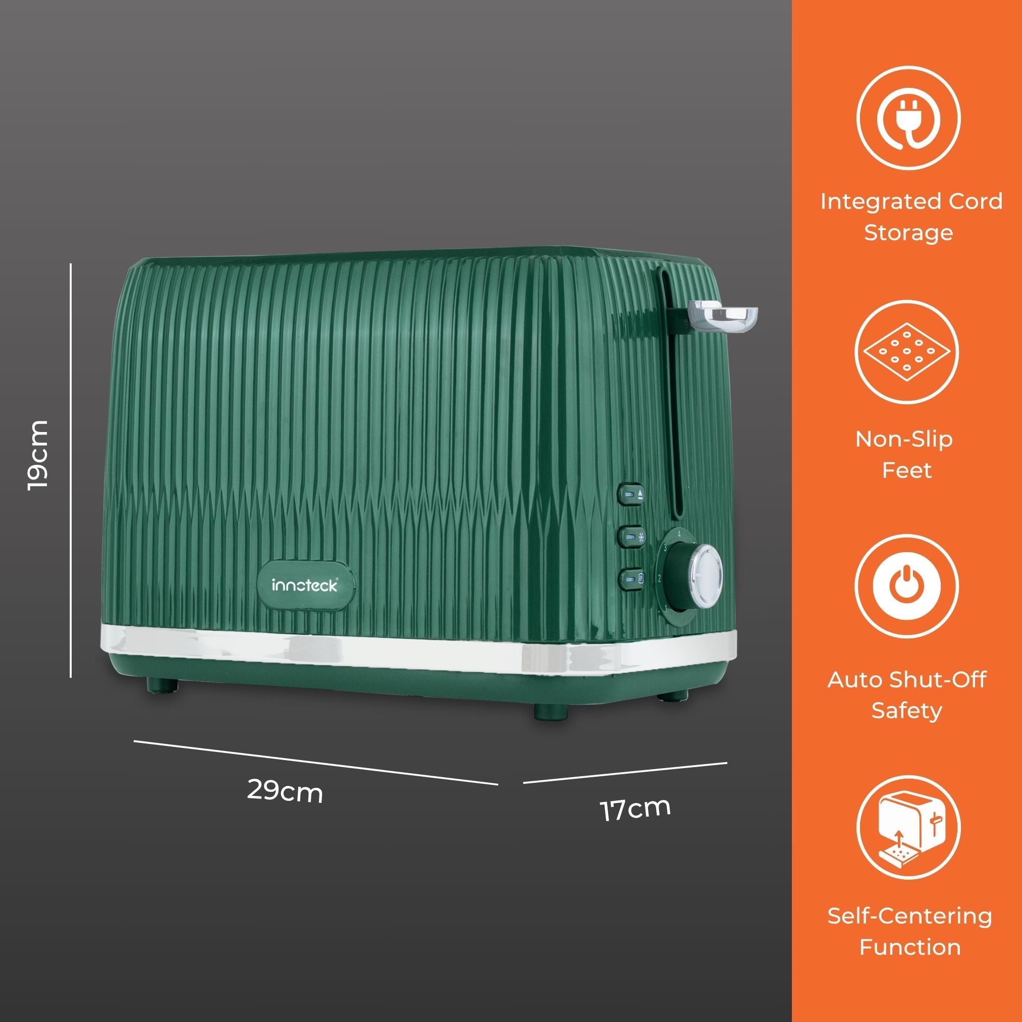 Our toaster comes with a removable crumb tray that wipes clean easily, and the kettle’s removable filter makes tidying up simple.