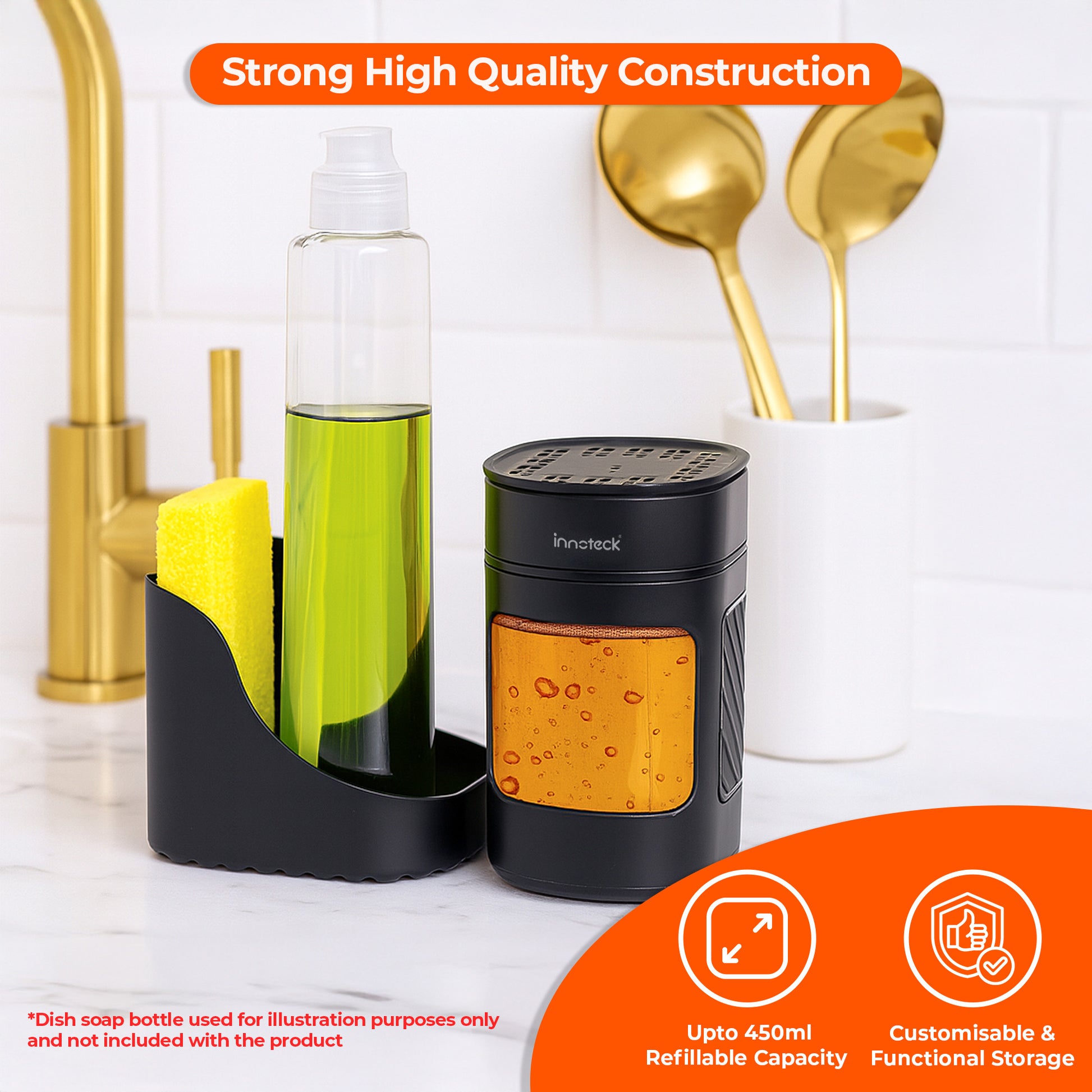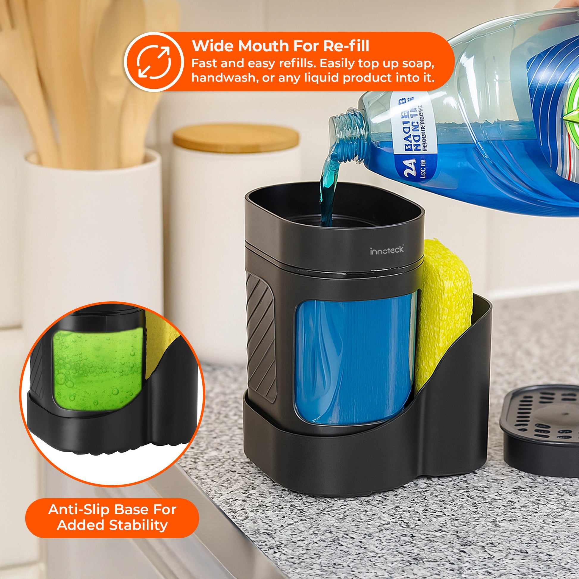 Simply press the pump with your sponge or hand to dispense the right amount of soap directly. The smooth pump action is designed for single-press, mess-free dispensing.