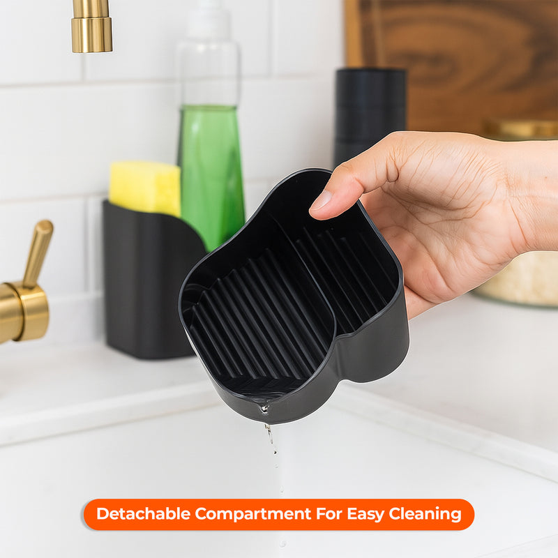Place your sponge, scrub brush, or dish towel on the integrated tray for easy access while cleaning. This ensures your cleaning tools are always within reach.
