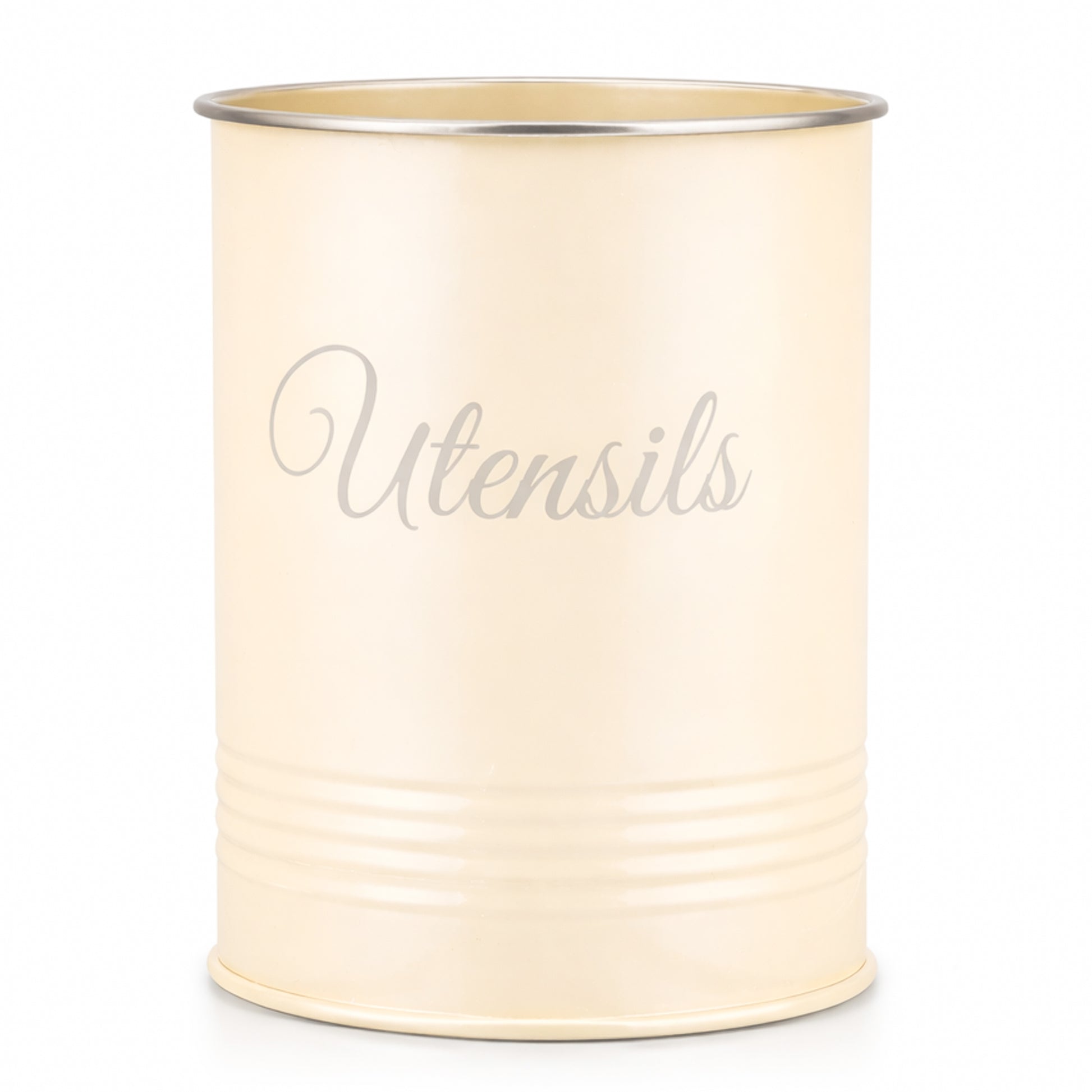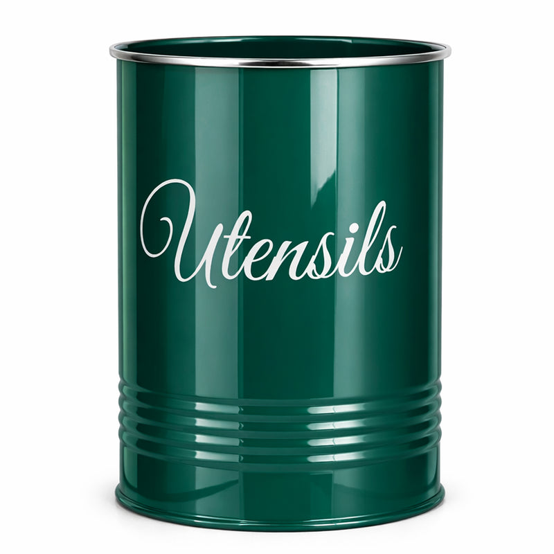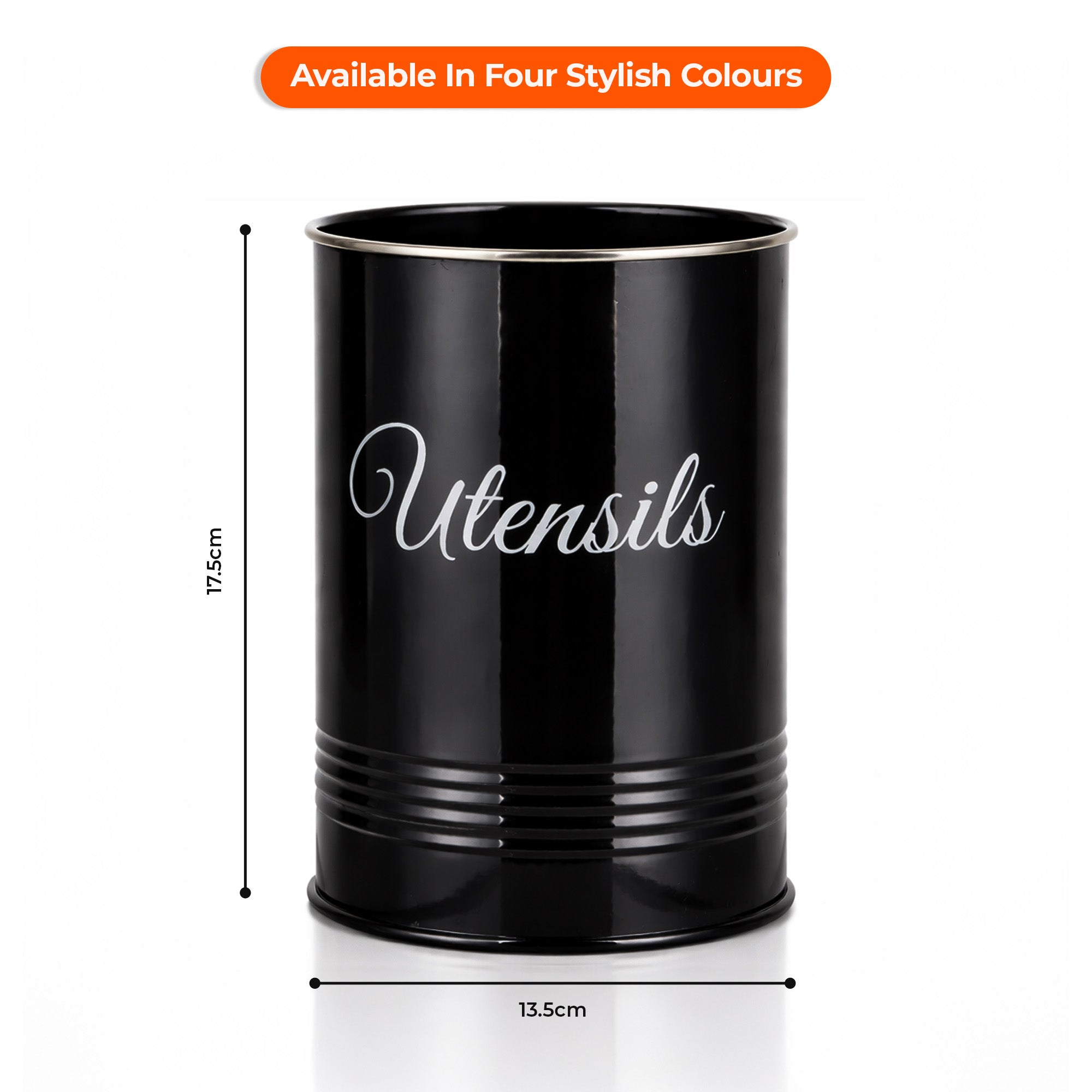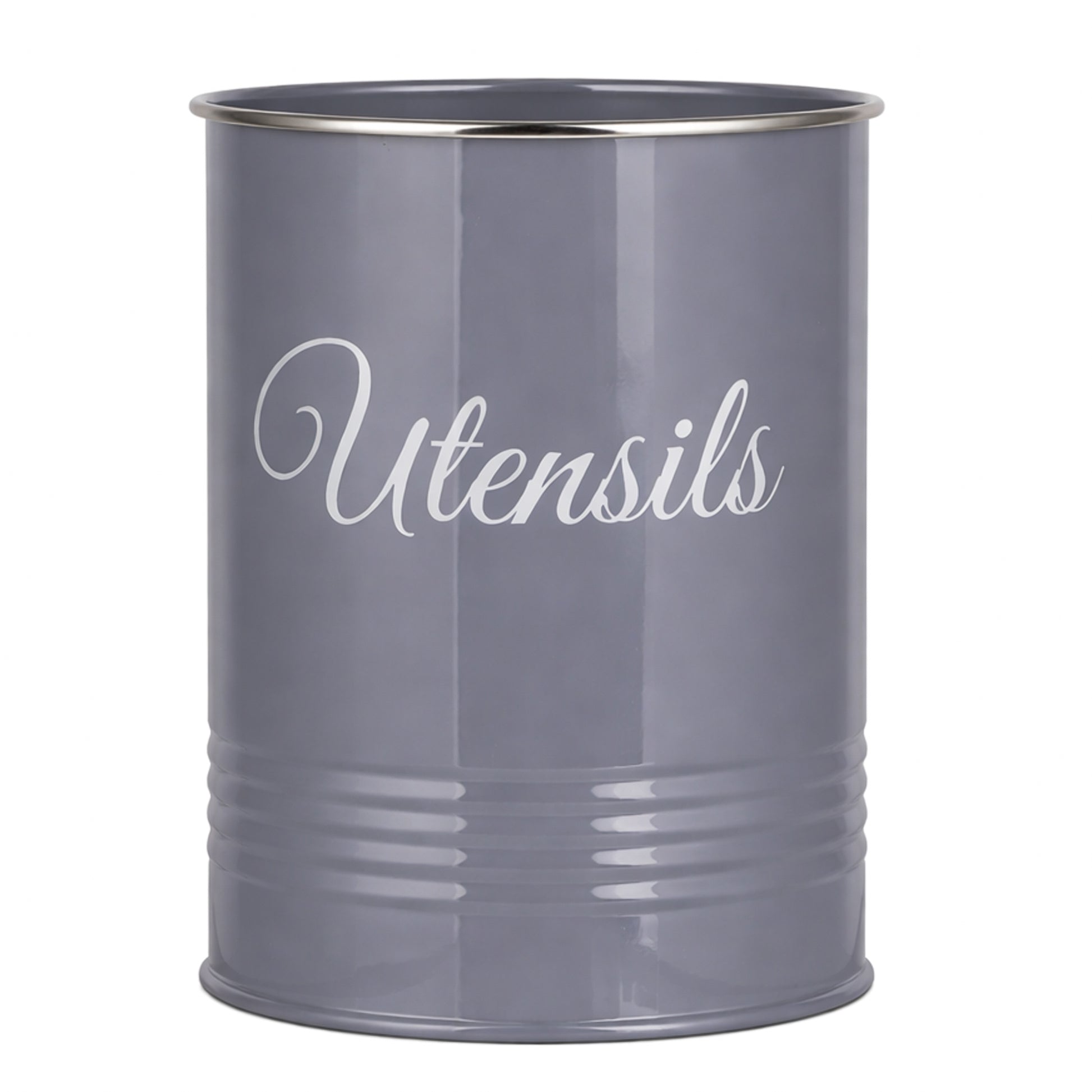 It is a durable metal utensil holder with a high-gloss finish for everyday kitchen use.